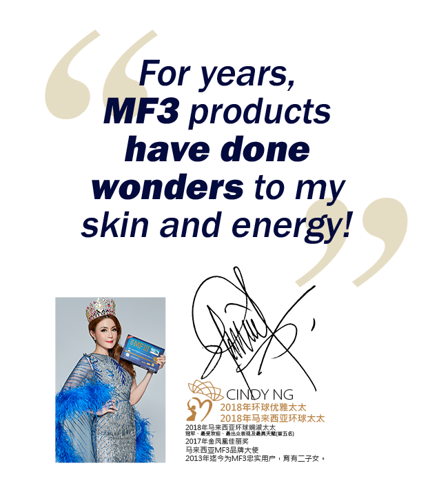 MF3 is a global anti-aging brand that offers Swiss-formulated cell therapy for general health and beauty care with botanical and placental extracts as some of its exciting exclusive ingredients.